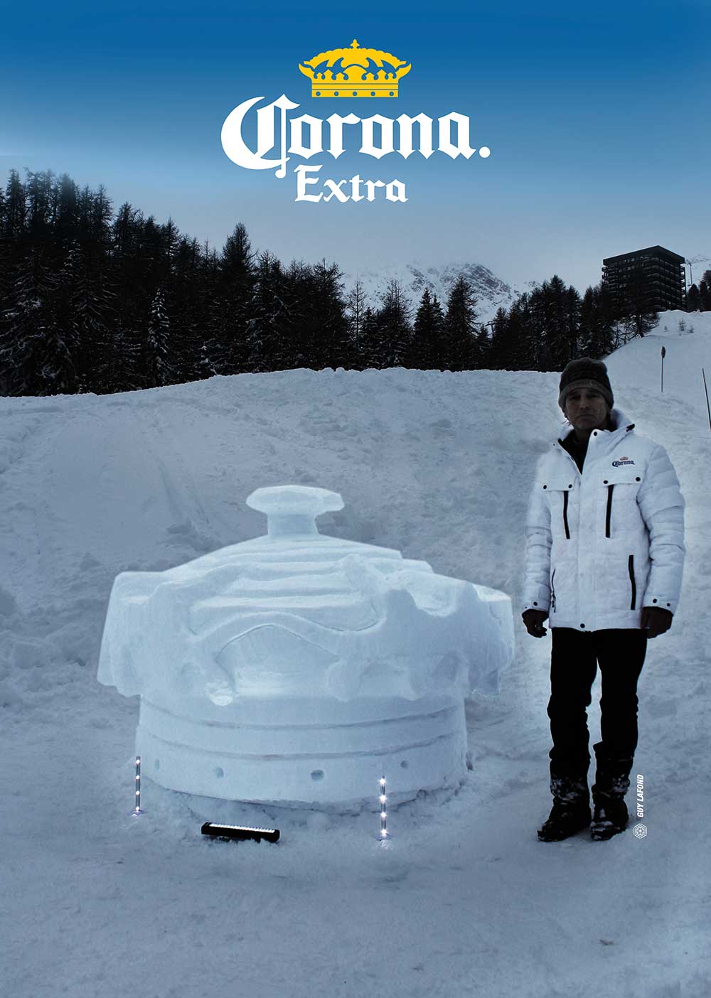 SCULPTURES BOIS SCULPTURES À EXPOSER CRÉATION SUR COMMANDE MONUMENTS PUBLICS SYMPOSIUM SCULPTURES BOIS SCULPTURES DIVERSES SCULPTURES NEIGE & GLACE SYMPOSIUM NEIGE NEIGE & GLACE SCULPTURES BRONZE SCULPTURES EN CHOCOLAT Sculptures glace en station Quelques sculptures publicitaires pour Corona : mon nouveau mécène