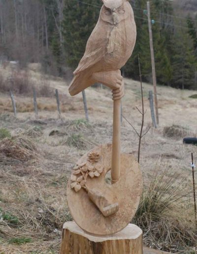 SCULPTURES BOIS SCULPTURES À EXPOSER CRÉATION SUR COMMANDE MONUMENTS PUBLICS SYMPOSIUM SCULPTURES BOIS SCULPTURES DIVERSES SCULPTURES NEIGE & GLACE SYMPOSIUM NEIGE NEIGE & GLACE SCULPTURES BRONZE SCULPTURES EN CHOCOLAT LE HIBOU DE LA PEINTRE Tilleul H 1m60 Une réalisation que j’aimerais voir peinte.