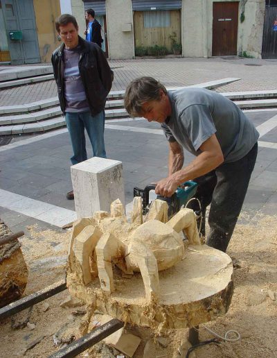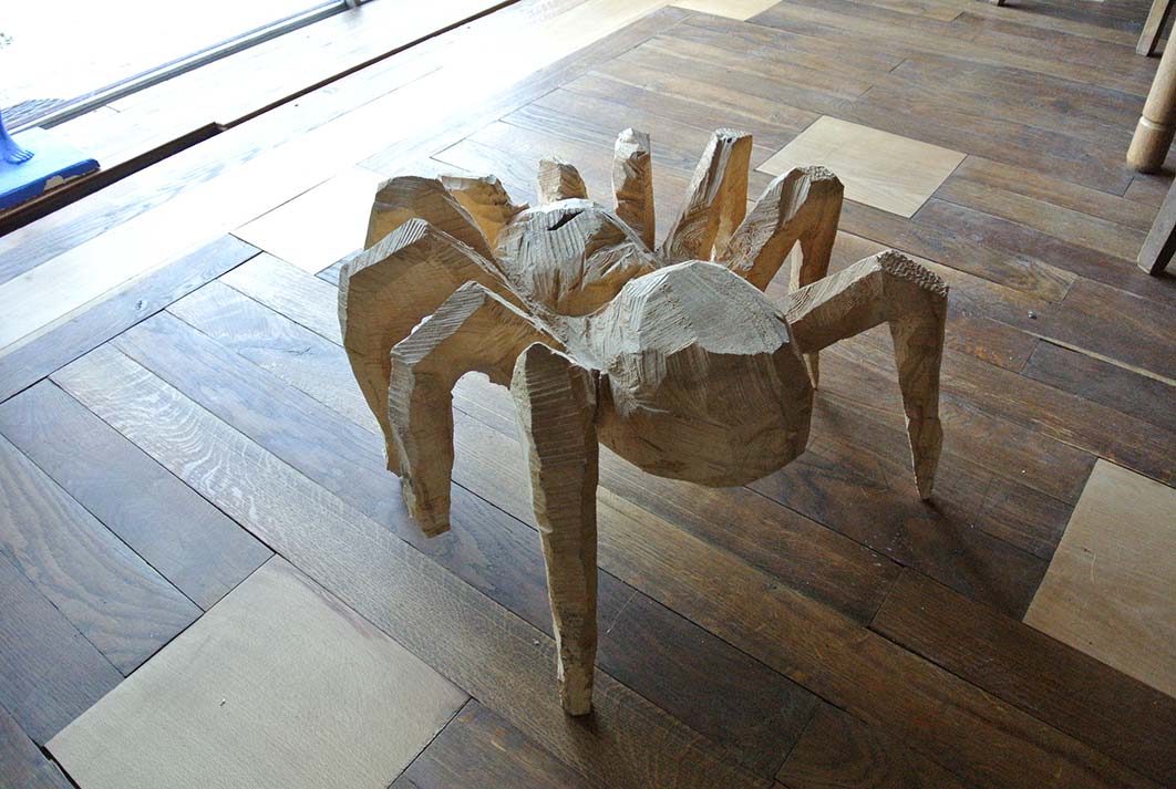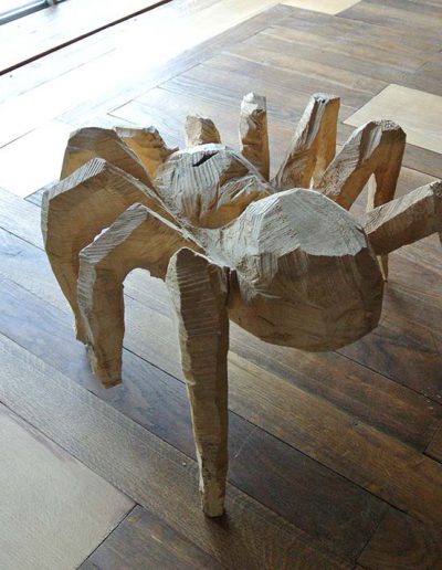SCULPTURES BOIS SCULPTURES À EXPOSER CRÉATION SUR COMMANDE MONUMENTS PUBLICS SYMPOSIUM SCULPTURES BOIS SCULPTURES DIVERSES SCULPTURES NEIGE & GLACE SYMPOSIUM NEIGE NEIGE & GLACE SCULPTURES BRONZE SCULPTURES EN CHOCOLAT Mygale – 2008 Tilleul H50cm x 60 x 70