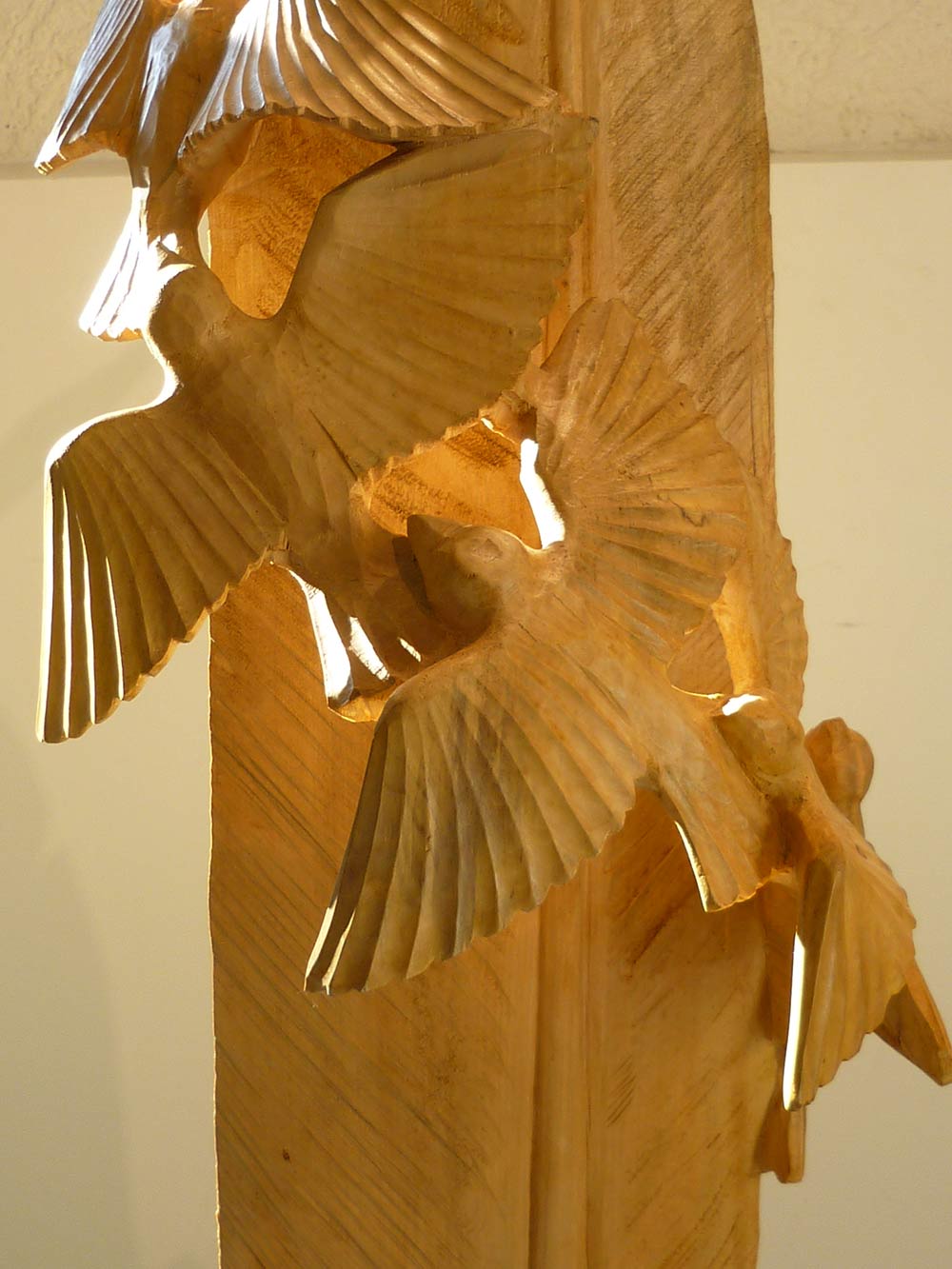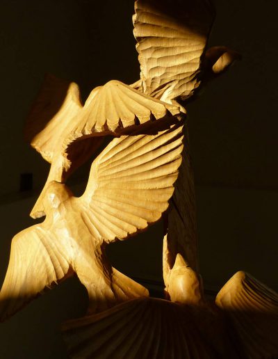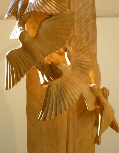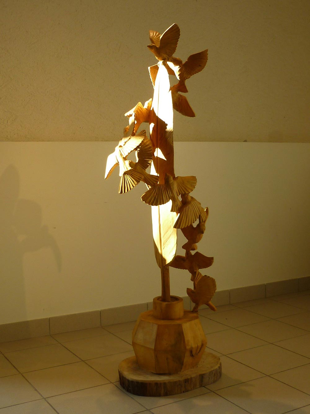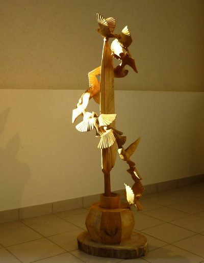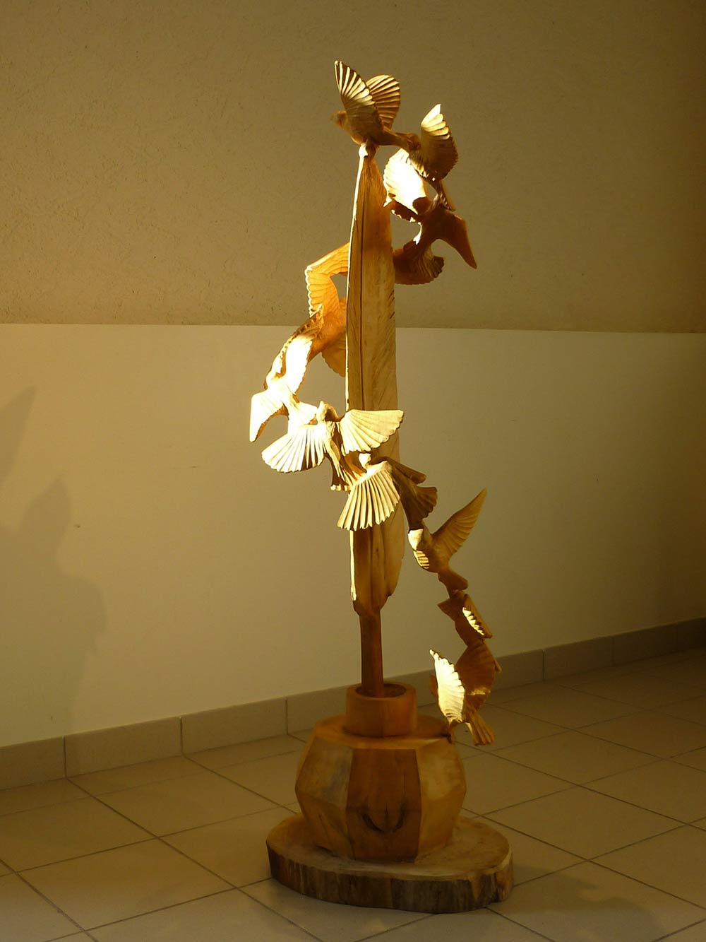 SCULPTURES BOIS SCULPTURES À EXPOSER CRÉATION SUR COMMANDE MONUMENTS PUBLICS SYMPOSIUM SCULPTURES BOIS SCULPTURES DIVERSES SCULPTURES NEIGE & GLACE SYMPOSIUM NEIGE NEIGE & GLACE SCULPTURES BRONZE SCULPTURES EN CHOCOLAT POÉSIE Tilleul 150 cm Cette sculpture veut évoquer la poésie. La colombe qui s’envole au rythme des pieds de l’alexandrin. (12 oiseaux les 12 pieds de l’alexandrin). La plume d’écriture dans son encrier.
